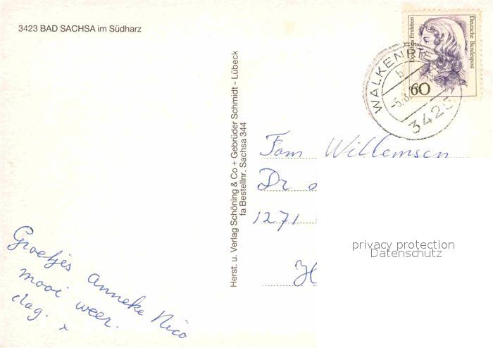 72783449 alte Postkarte Bad Sachsa Harz Kirche Turm Park Panorama Kurhotel postalisch gelaufen Erhaltung siehe scans [WerneD78] KatCode: 11110003156003