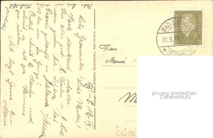 41594018 alte Postkarte Bad Sachsa Harz Kirchstrasse nach einer Zeichnung von K.Schaefer postalisch gelaufen Erhaltung siehe scans KatCode: 11110003156003