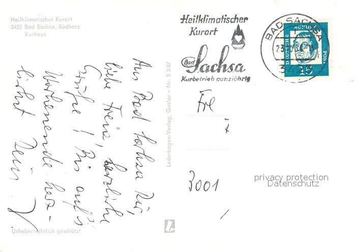 73118924 alte Postkarte Bad Sachsa Harz Kurhaus postalisch gelaufen Erhaltung siehe scans [LiesaD40] KatCode: 11110003156003