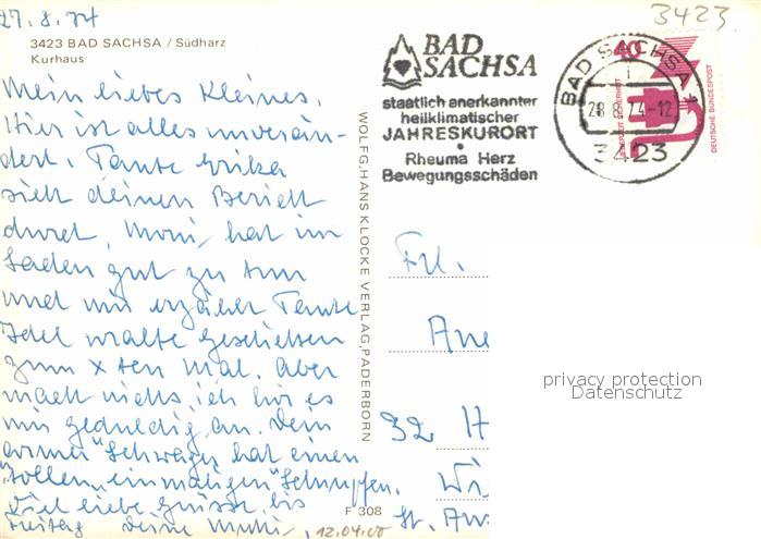 72908117 alte Postkarte Bad Sachsa Harz Kurhaus postalisch gelaufen Erhaltung siehe scans [NatalD47] KatCode: 11110003156003