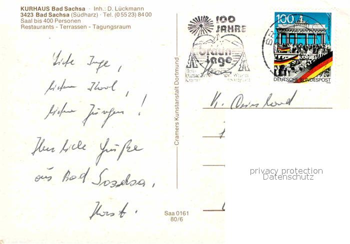 72639663 alte Postkarte Bad Sachsa Harz Kurhaus Restaurant Terrasse postalisch gelaufen Erhaltung siehe scans [FriedD77] KatCode: 11110003156003