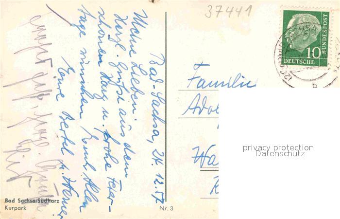 72890428 alte Postkarte Bad Sachsa Harz Kurpark postalisch gelaufen Erhaltung siehe scans [FriedD77] KatCode: 11110003156003