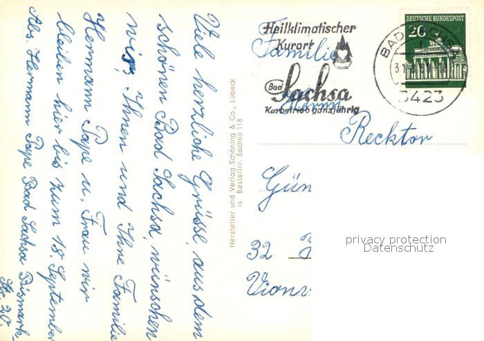 72952700 alte Postkarte Bad Sachsa Harz Kurpark Schmelzteich Ravensberg Kurmittelhaus Odertalsperre Springbrunnen Schwimmbad Roemersteine Felsen postalisch gelaufen Erhaltung siehe scans [FriedD77] KatCode: 11110003156003