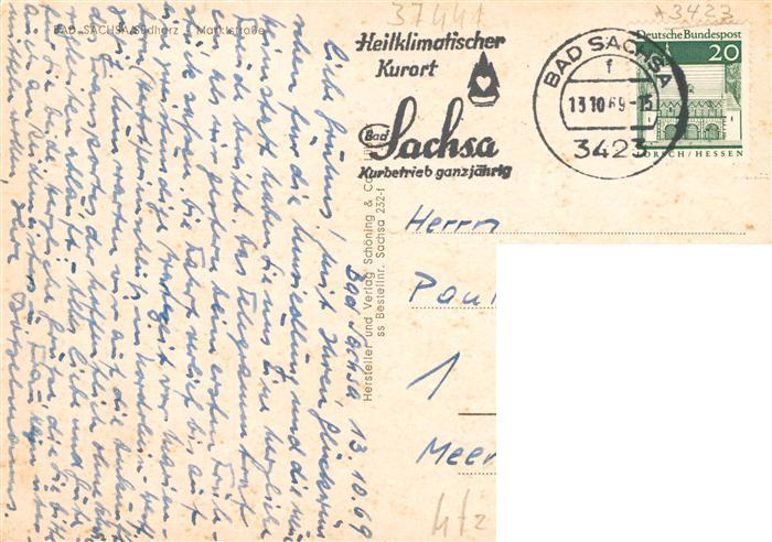 73905017 alte Postkarte Bad Sachsa Harz Marktstrasse postalisch gelaufen Erhaltung siehe scans [WerneD78] KatCode: 11110003156003