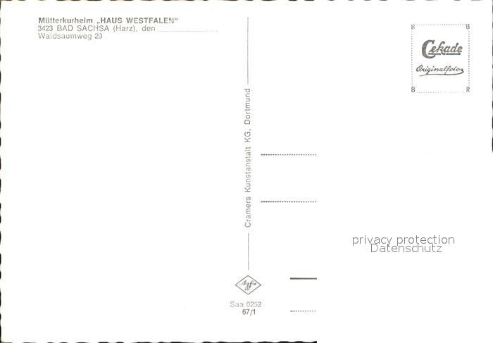 72505710 Bad Sachsa Harz Muetterkurheim Haus Westfalen postalisch nicht gelaufen Erhaltung siehe scans KatCode: 11110003156003