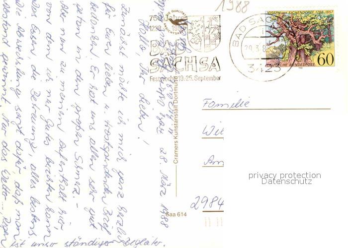 72898837 alte Postkarte Bad Sachsa Harz Panorama Kurpark Kurzentrum Schmelzteich postalisch gelaufen Erhaltung siehe scans [FriedD77] KatCode: 11110003156003