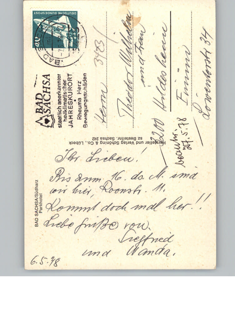 31129376 Bad Sachsa Harz Parkhotel postalisch nicht gelaufen KatCode: 11110003156003