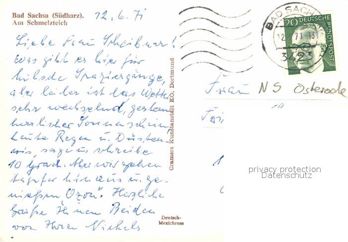 72918497 alte Postkarte Bad Sachsa Harz Partie am Schmelzteich postalisch gelaufen Erhaltung siehe scans [FriedD77] KatCode: 11110003156003