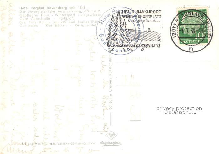 73163511 alte Postkarte Bad Sachsa Harz Ravensberg Fliegeraufnahme postalisch gelaufen Erhaltung siehe scans [WerneD78] KatCode: 11110003156003