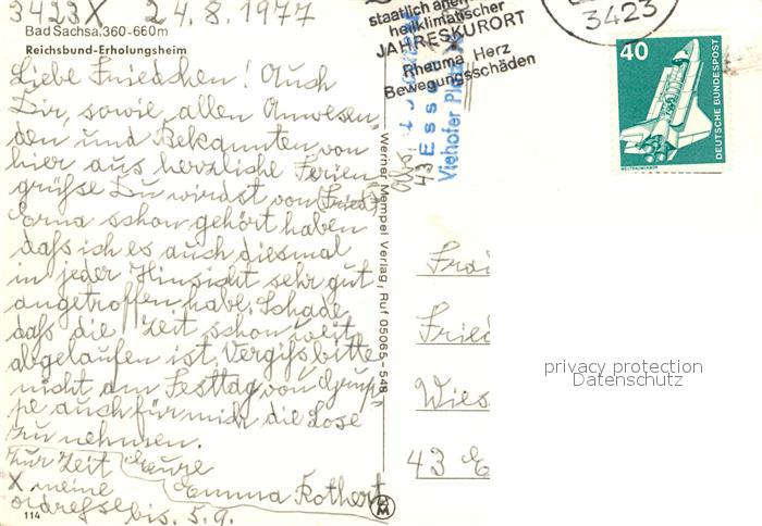 73090555 alte Postkarte Bad Sachsa Harz Reichsbund-Erholungsheim postalisch gelaufen Erhaltung siehe scans [NatalD47] KatCode: 11110003156003