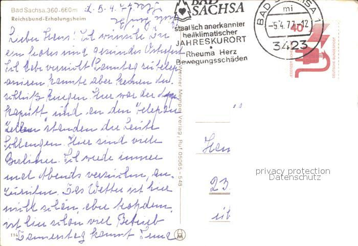72599781 alte Postkarte Bad Sachsa Harz Reichsbund Erholungsheim Kurort postalisch gelaufen Erhaltung siehe scans [FriedD77] KatCode: 11110003156003