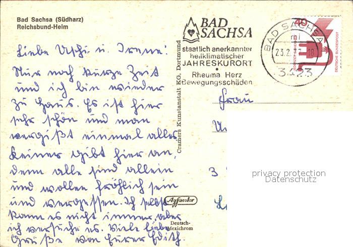 72612338 alte Postkarte Bad Sachsa Harz Reichsbund-Heim postalisch gelaufen Erhaltung siehe scans [AndreD76] KatCode: 11110003156003