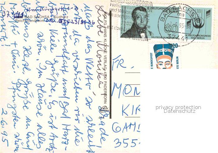 72852113 alte Postkarte Bad Sachsa Harz Reichsbundheim postalisch gelaufen Erhaltung siehe scans [NatalD47] KatCode: 11110003156003
