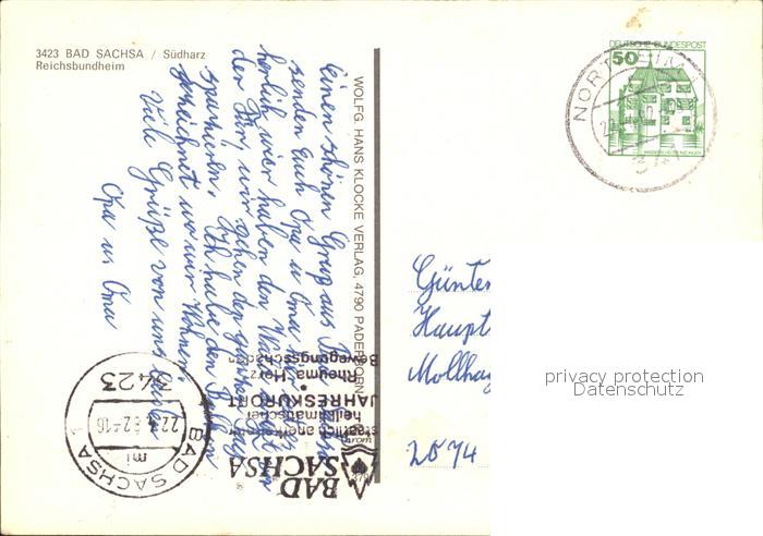 72054893 alte Postkarte Bad Sachsa Harz Reichsbundheim postalisch gelaufen Erhaltung siehe scans KatCode: 11110003156003