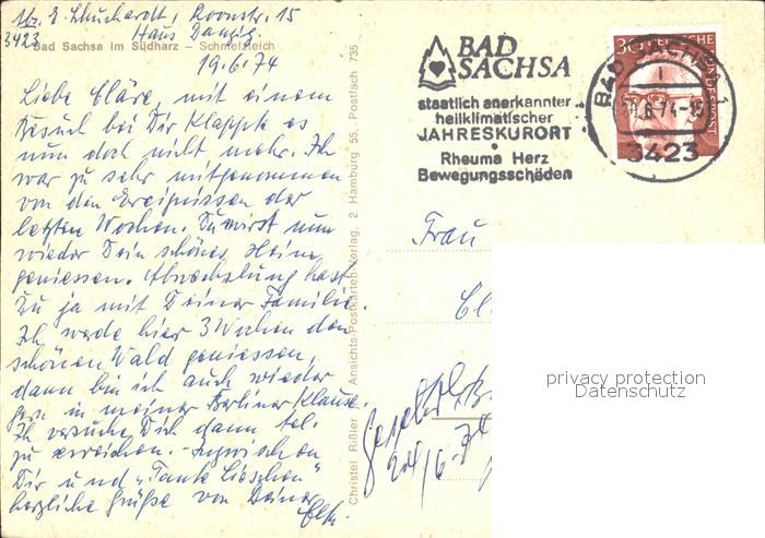 72922156 alte Postkarte Bad Sachsa Harz Schmelzteich postalisch gelaufen Erhaltung siehe scans [MatthD68] KatCode: 11110003156003