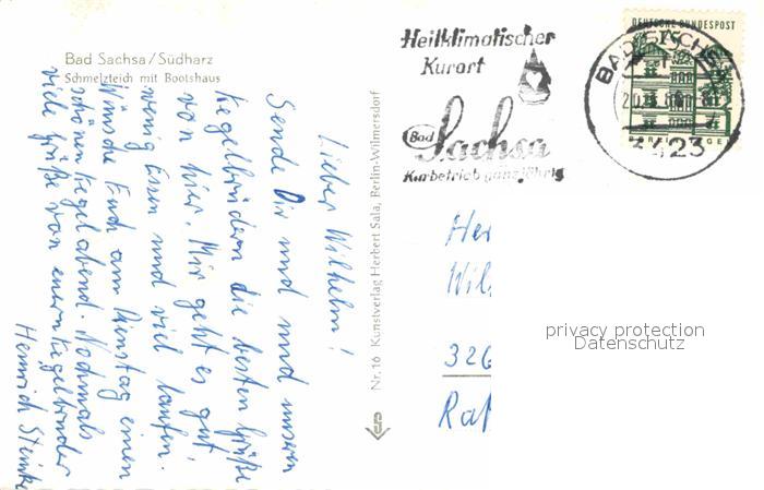 72844545 alte Postkarte Bad Sachsa Harz Schmelzteich Bootshaus postalisch gelaufen Erhaltung siehe scans [KathaD81] KatCode: 11110003156003