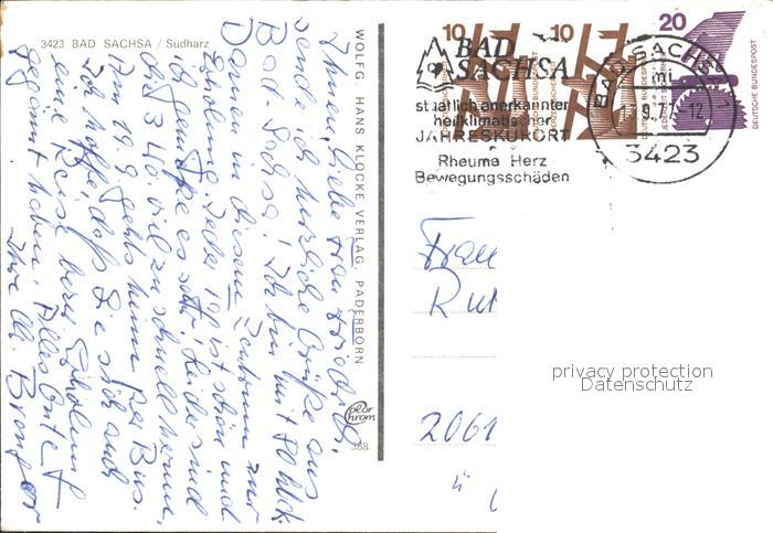 72182497 alte Postkarte Bad Sachsa Harz Seniaorenzentrum postalisch gelaufen Erhaltung siehe scans KatCode: 11110003156003