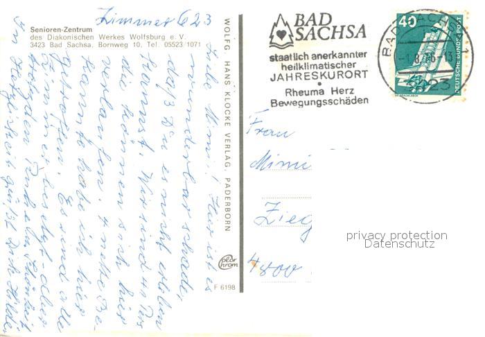 73636677 alte Postkarte Bad Sachsa Harz Senioren Zentrum des Diakonischen Werkes Wolfsburg postalisch gelaufen Erhaltung siehe scans [WerneD78] KatCode: 11110003156003