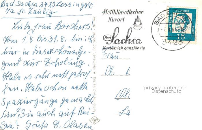 73065402 alte Postkarte Bad Sachsa Harz Steinatal Schmelzteich Kurmittelhaus Roemerstein Hirsch postalisch gelaufen Erhaltung siehe scans [WerneD78] KatCode: 11110003156003