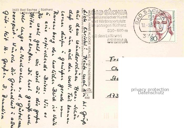 74021839 alte Postkarte Bad Sachsa Osterode Harz Fliegeraufnahme postalisch gelaufen Erhaltung siehe scans [FriedD77] KatCode: 11110003156003