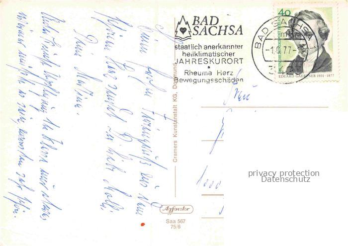74154831 alte Postkarte Bad Sachsa Osterode Harz Niedersachsen Kurhaus Schwimmbad Schmerlbrunnen Kurpark Schmelzteich Katzenstein Ravensberg Panorama postalisch gelaufen Erhaltung siehe scans [WerneD78] KatCode: 11110003156003