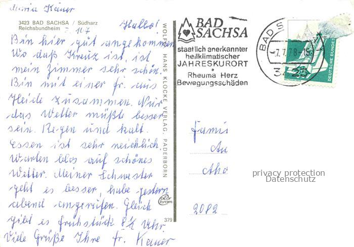 74152899 alte Postkarte Bad Sachsa Osterode Harz Niedersachsen Reichsbundheim postalisch gelaufen Erhaltung siehe scans [WerneD78] KatCode: 11110003156003