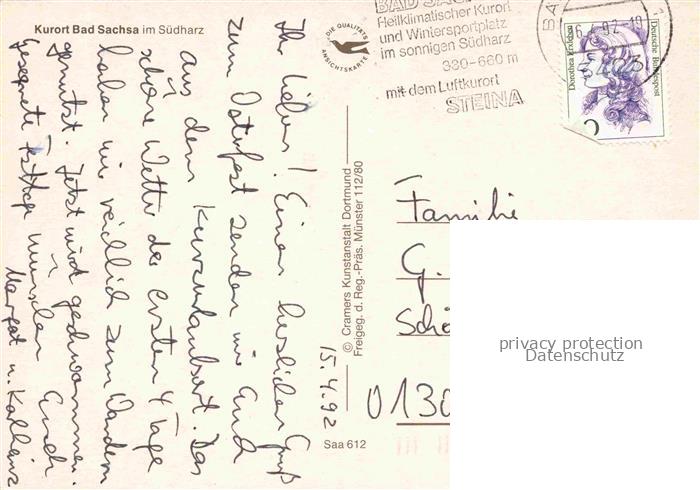 74022821 alte Postkarte Bad Sachsa Osterode Harz Teilansicht Kurort postalisch gelaufen Fliegeraufnahme Erhaltung siehe scans [FriedD77] KatCode: 11110003156003
