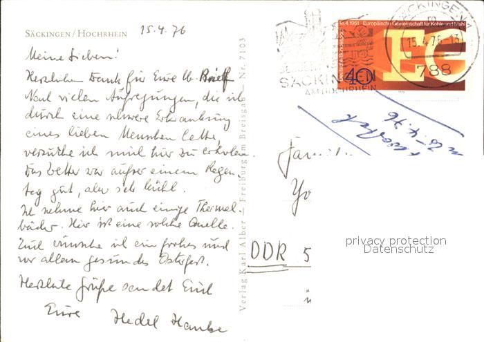 72492317 alte Postkarte Bad Saeckingen postalisch gelaufen Erhaltung siehe scans KatCode: 11110008337096