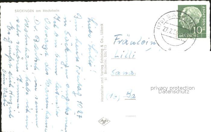 72138959 alte Postkarte Bad Saeckingen am Hochrhein Gedeckte Bruecke postalisch gelaufen Erhaltung siehe scans KatCode: 11110008337096