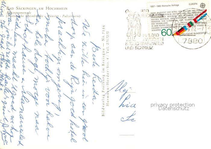 72930886 alte Postkarte Bad Saeckingen am Hochrhein Rheinpromenade postalisch gelaufen Erhaltung siehe scans [LiesaD40] KatCode: 11110008337096
