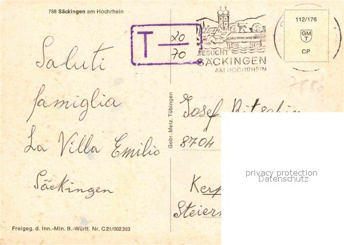 72872382 alte Postkarte Bad Saeckingen am Hochrhein Schwarzwald Fliegeraufnahme postalisch gelaufen Erhaltung siehe scans [FriedD77] KatCode: 11110008337096
