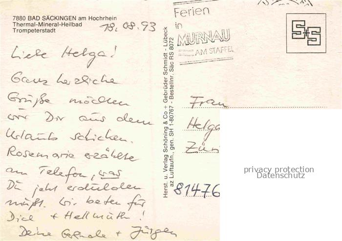 74153477 alte Postkarte Bad Saeckingen BW Panorama Thermal-Mineral-Heilbad Trompeterstadt postalisch gelaufen Fliegeraufnahme Erhaltung siehe scans [FriedD77] KatCode: 11110008337096