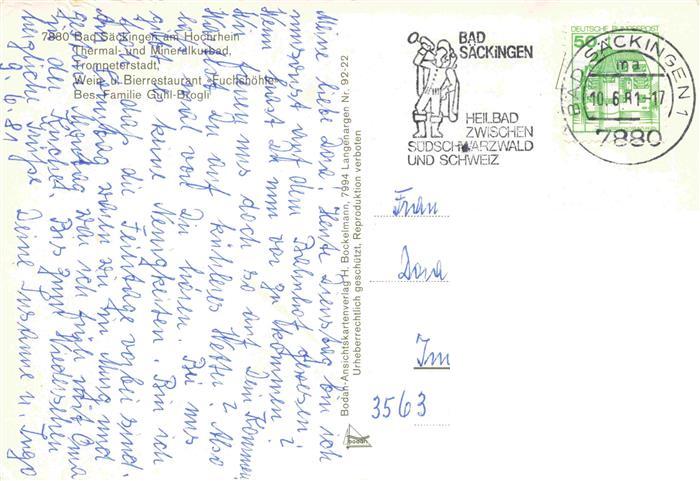74142846 alte Postkarte Bad Saeckingen BW Restaurant Fuchshoehle postalisch gelaufen Erhaltung siehe scans [IrynaD87] KatCode: 11110008337096