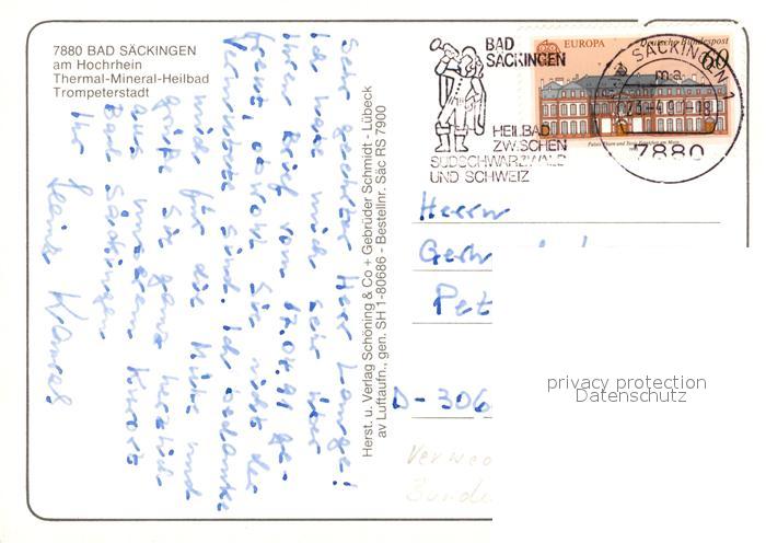 73158116 alte Postkarte Bad Saeckingen Fliegeraufnahme postalisch gelaufen Erhaltung siehe scans [WerneD78] KatCode: 11110008337096