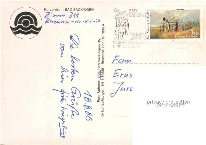 72727894 alte Postkarte Bad Saeckingen Fliegeraufnahme Kurzentrum postalisch gelaufen Erhaltung siehe scans [LiesaD40] KatCode: 11110008337096