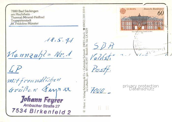 72760566 alte Postkarte Bad Saeckingen Fliegeraufnahme Trompeterstadt St. Fridolins-Muenster postalisch gelaufen Erhaltung siehe scans [LiesaD40] KatCode: 11110008337096