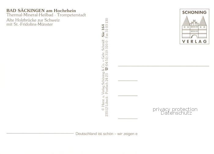 73789512 Bad Saeckingen Hochrhein Alte Holzbruecke zur Schweiz mit St Fridolins Muenster postalisch nicht gelaufen Erhaltung siehe scans [WerneD78] Wern Katcode 11110008337096