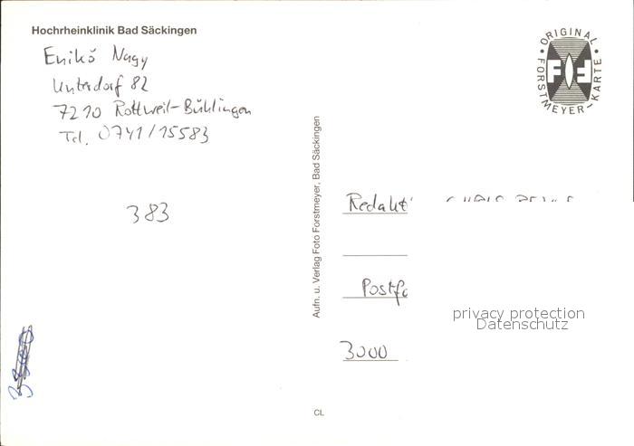 72465659 Bad Saeckingen Hochrheinklinik Park Schwimmbad postalisch nicht gelaufen Erhaltung siehe scans KatCode: 11110008337096