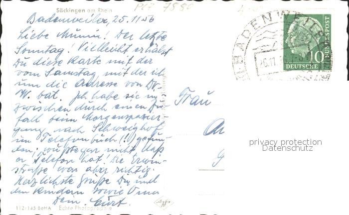 72922902 alte Postkarte Bad Saeckingen Holzbruecke Fridolinsmuenster postalisch gelaufen Erhaltung siehe scans [PaolaD17] KatCode: 11110008337096