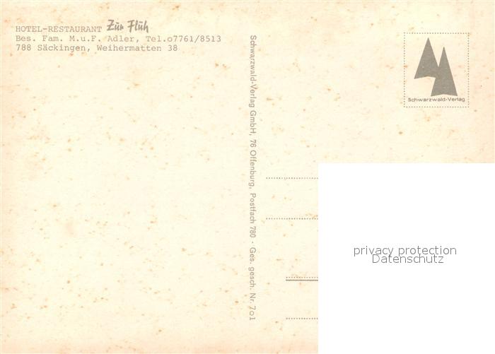 73478001 Bad Saeckingen Hotel Restaurant Zur Flueh postalisch nicht gelaufen Erhaltung siehe scans [FriedD77] KatCode: 11110008337096