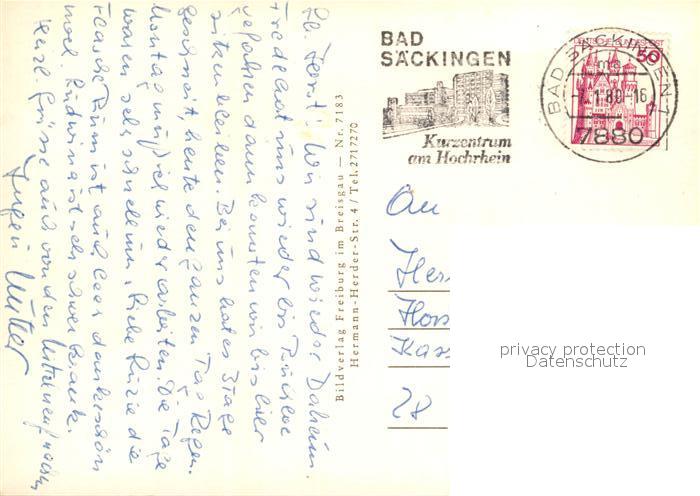 73174029 alte Postkarte Bad Saeckingen Kurklinik Hochrhein Rheumaklinik Thermalbad postalisch gelaufen Erhaltung siehe scans [FriedD77] KatCode: 11110008337096