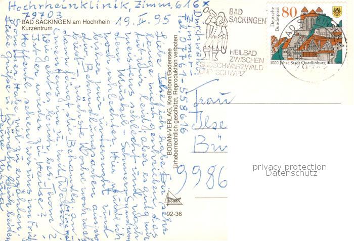 73320965 alte Postkarte Bad Saeckingen Kurzentrum Fliegeraufnahme postalisch gelaufen Erhaltung siehe scans [WerneD78] KatCode: 11110008337096