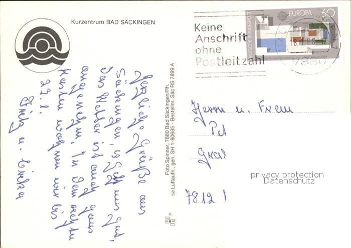 71830338 alte Postkarte Bad Saeckingen Kurzentrum Fliegeraufnahme postalisch gelaufen Erhaltung siehe scans KatCode: 11110008337096