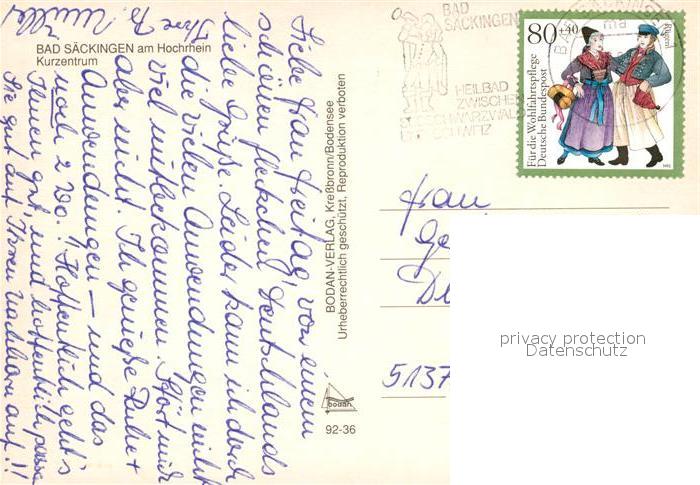 73149104 alte Postkarte Bad Saeckingen Kurzentrum Rhein Fliegeraufnahme postalisch gelaufen Erhaltung siehe scans [FriedD77] KatCode: 11110008337096