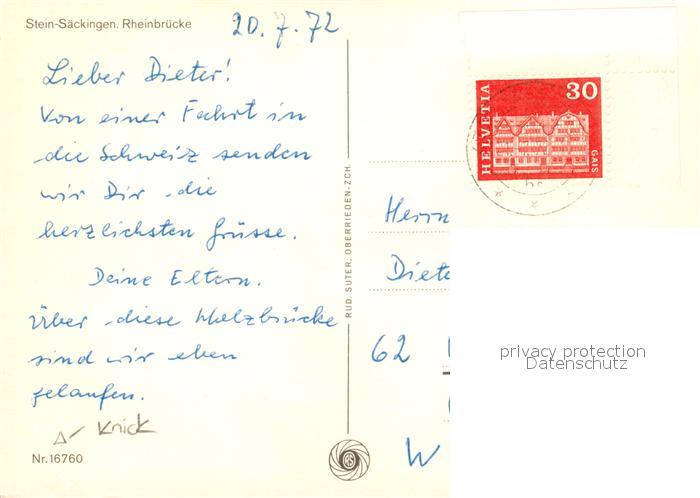 73232718 alte Postkarte Bad Saeckingen Stein Rheinbruecke postalisch gelaufen Erhaltung siehe scans [KathaD81] KatCode: 11110008337096