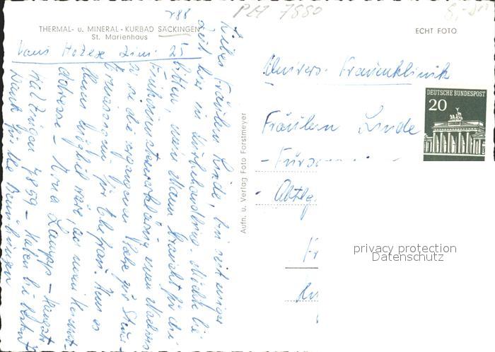 72354575 Bad Saeckingen Thermal-Miniral-Kurbad St. Marienhaus postalisch nicht gelaufen Erhaltung siehe scans KatCode: 11110008337096