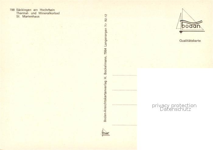 73655605 Bad Saeckingen Thermal- und Mineralkurbad St. Marienhaus postalisch nicht gelaufen Erhaltung siehe scans [FriedD77] KatCode: 11110008337096