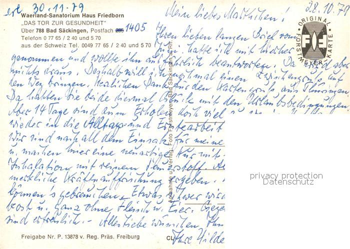 73210959 alte Postkarte Bad Saeckingen Waerland Sanatorium Haus Friedborn Fliegeraufnahme postalisch gelaufen Erhaltung siehe scans [WerneD78] KatCode: 11110008337096