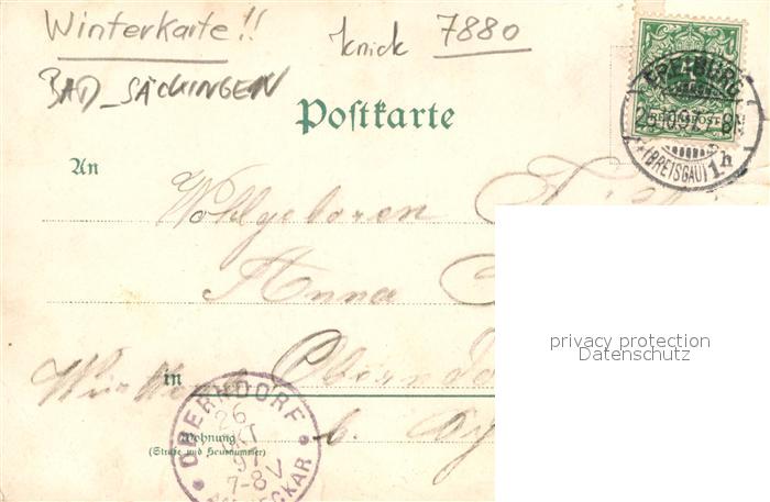 42949824 alte Postkarte Bad Saeckingen Winterkarte Trompeter Teilansicht Rheinbruecke Muenster postalisch gelaufen Erhaltung siehe scans [AndreD76] KatCode: 11110008337096