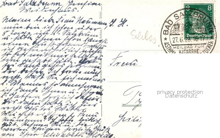 old postcard Bad Salzbrunn Szczawno-Zdroj Partie im Schaffertal postalisch gelaufen Erhaltung siehe scans [WerneD78]